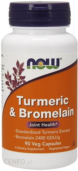 NOW Foods Turmeric & Bromelain – kurkuma i bromelaina zawiera ekstrakt standaryzowany z ostryżu długiego (kurkumy) zgodny z dietą wegetariańską i wegańską NOW® Turmeric & Bromelain zawiera kurkuminę z kłącza ostryżu długiego – kurkumy i bromelainę z ananasa (Ananas comosus). Kurkuma – roślina przyprawowa jest również stosowana w tradycyjnej medycynie indyjskiej. Kompleks substancji czynnych zawartych w ekstrakcie nosi nazwę kurkuminoidów. Bromelaina – substancja enzymatyczna z ananasa – ma właściwość proteolizy, tj. rozszczepiania białek. Kurkuma wspiera pracę systemu nerwowego, równowagę umysłową i utrzymanie równowagi nerwowej. Kurkuma (jako kurkumina) przyczynia się do utrzymania komfortu układu mięśniowo-szkieletowego i kontroli substancji wywołujących rozwój stanu zapalnego. Pomaga utrzymać zdrowie płuc i górnych dróg oddechowych. Wspiera wytwarzanie i prawidłową jakość krwi. Wspiera pracę serca i układ krążenia. Wspiera trawienie, prawidłową pracę wątroby oraz dróg żółciowych. Przyczynia się do prawidłowego trawienia tłuszczów i ograniczenia kumulacji tłuszczów w wątrobie. Pobudza apetyt. Pomaga utrzymać skuteczność systemu odpornościowego; odporność na alergie i zdrową skórę. Wykazuje znaczące właściwości przeciwoksydacyjne. Produkt wytworzony w standardzie GMP. Dla zachowania bezpieczeństwa i satysfakcji swoich klientów NOW Foods stosuje surowce jakości farmakopealnej a ich dostawcy są regularnie kontrolowani. Zawartość: 90 kapsułek wegetariańskich Dzienne spożycie: 4 kapsułki Opakowanie starcza na: 30 dni Masa netto: 56 g Wartości odżywcze: Now Foods Turmeric & Bromelain Wartość odżywcza Zalecana do spożycia dzienna porcja:4 tabletki %RWS Kłącze ostryżu długiego (Curcuma longa) (ekstrakt standaryzowany) 1200 mg † Bromelina (2400 jednostek GDU/g) 600 mg † * Procent dziennej wartości odpowiada diecie 2 000 kalorii. † – RWS nie zostało określone Składniki: Kłącze ostryżu długiego (ekstrakt) (DER 15,8:1, 95% kurkuminoidów); bromelaina z ananasa (2400 GDU/g); materiał kapsułki: pochodne celulozy; subst. przeciwzbrylające – kwas stearynowy, sole magnezowe kwasów tłuszczowych, krzemionka bezpostaciowa. W procesie produkcji nie użyto alergenów i składników: pszenicy, glutenu, soi, mleka, jajek, ryb, skorupiaków ani orzechów drzew. Wyprodukowano w zakładzie stosującym zasady dobrej praktyki wytwarzania (GMP), w którym przetwarza się składniki innych preparatów zawierające te alergeny. Sposób użycia: Przyjmować 2 kapsułki 2 razy dziennie, wraz z posiłkiem Nie należy przekraczać porcji zalecanej do spożycia w ciągu dnia. Suplementy diety nie mogą być stosowane jako substytut zróżnicowanej diety. Utrzymanie prawidłowego stanu zdrowia wymaga zrównoważonego odżywiania się i prowadzenia zdrowego trybu życia. Przechowywanie: Po otwarciu przechowywać w temperaturze pokojowej, w suchym i chłodnym miejscu, w sposób niedostępny dla małych dzieci. Ostrzeżenie: Produkt przeznaczony do stosowania wyłącznie przez osoby dorosłe. Osoby uczulone na ananasy nie powinny stosować tego preparatu. Kobiety w ciąży, karmiące oraz osoby przyjmujące leki (w szczególności cyklosporynę lub leki przeciwzakrzepowe) lub mające schorzenia powinny skonsultować się z lekarzem. Uwaga: Umieszczony wewnątrz pakiecik służy utrzymaniu świeżości produktu i jest niejadalny. Należy go przechowywać w słoiczku. W produkcie mogą wystąpić naturalne różnice koloru. Informacje o producencie: Firma NOW produkuje naturalne, zdrowe produkty żywnościowe oraz suplementy diety od roku 1968, a jakość oraz bezpieczeństwo produktów zawsze stanowiły dla firmy najwyższy priorytet. Misją naszej firmy jest nadanie naszym produktom i usługom wartości, które umożliwią ludziom zdrowsze życie. Nieustannie wypełniamy tę misję produkując bezpieczne, naturalne produkty pierwszorzędnej jakości, które stanowią uzupełnienia każdego zdrowego stylu życia.